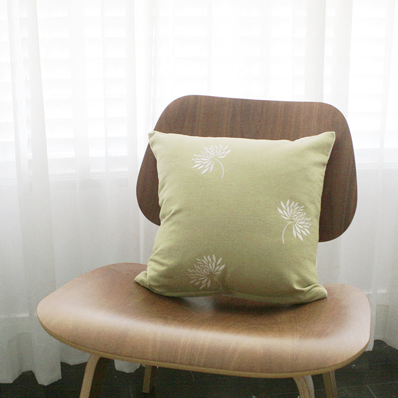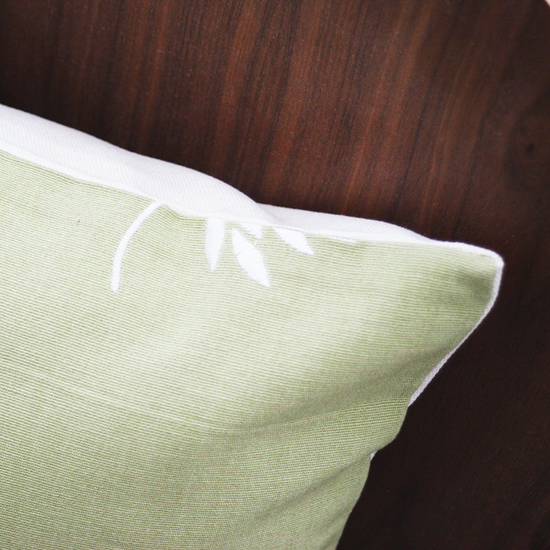 16"x16" Beige/Green Dandelion Embroidered Throw Pillow Cover