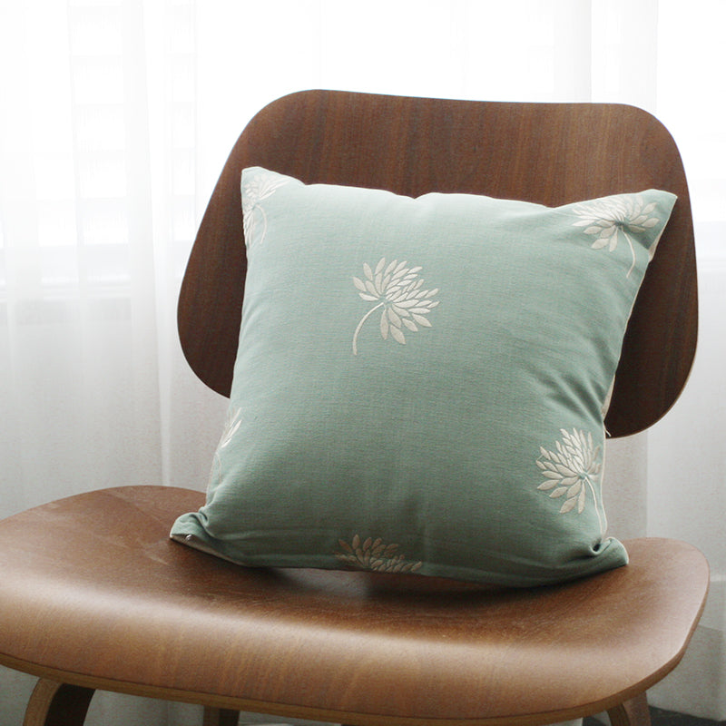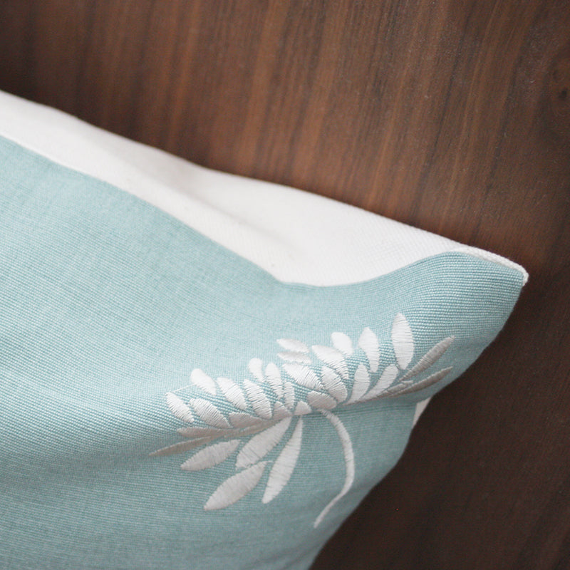 16"x16" Beige/Light Teal Dandelion Embroidered Throw Pillow Cover