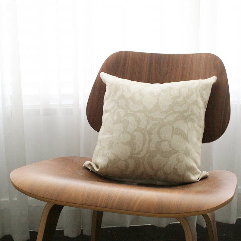 16"x16" Beige/Off-White Peony Throw Pillow Cover