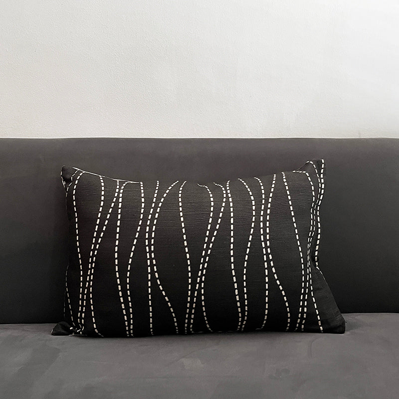18"x12" Charcoal/Natural Wavy Stripe Throw Pillow Cover
