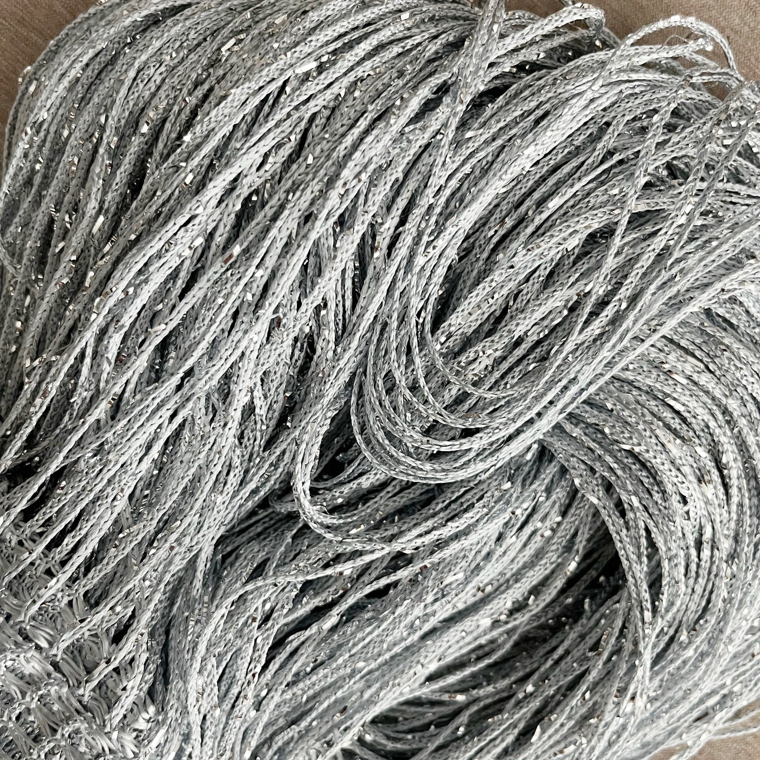 3'-0" W x 6'-6" H Sparkling String Curtain / Fringe Room Divider - Silver Colorway