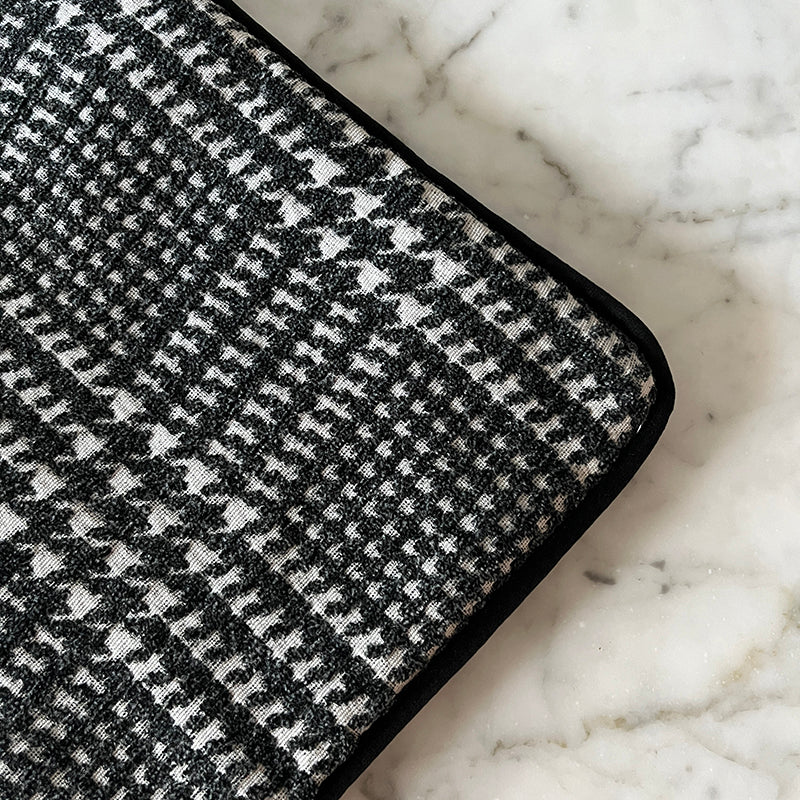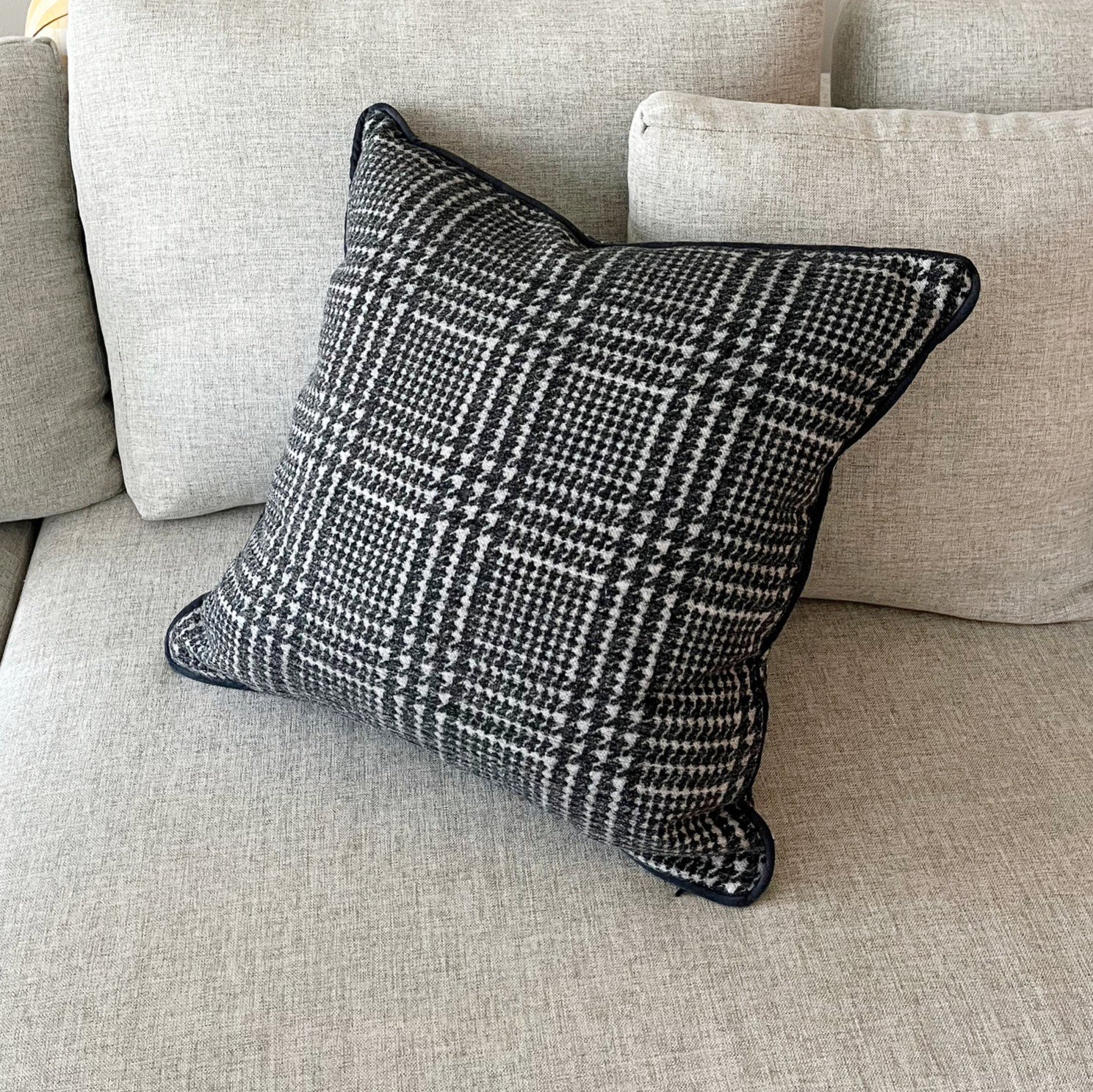 Plaid Houndstooth with Black Piping Throw Pillow Cover - Dark Gray Colorway