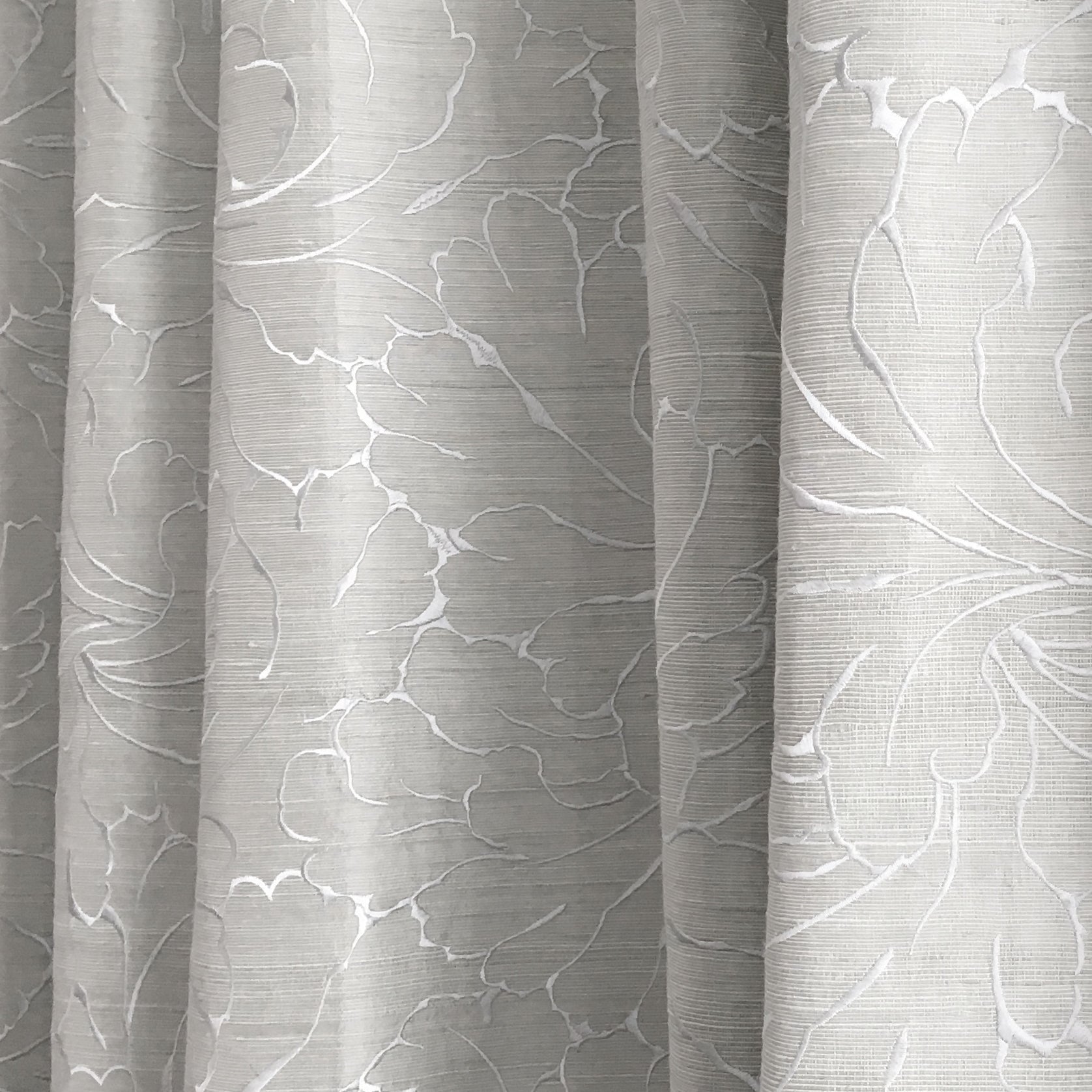Shimmerly Grey Peony-Pattern Embroidered Two-Ply Silk Fabric